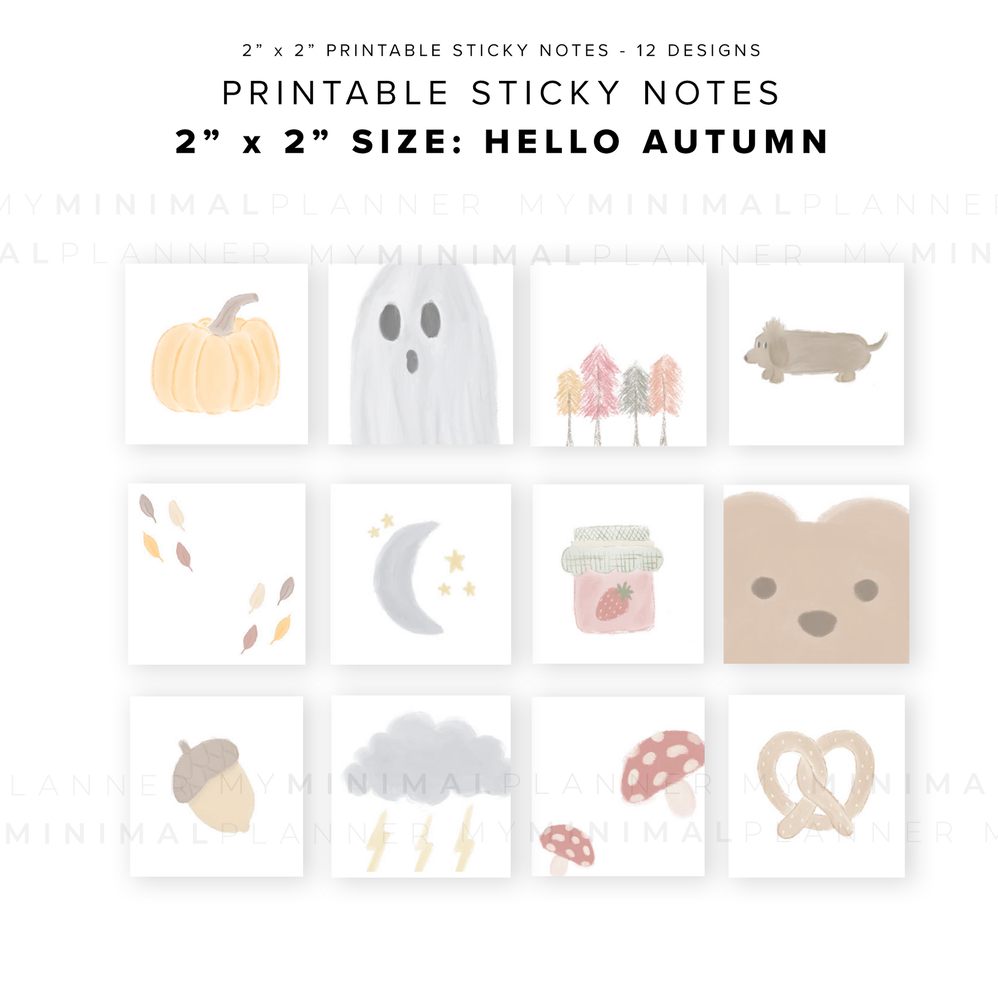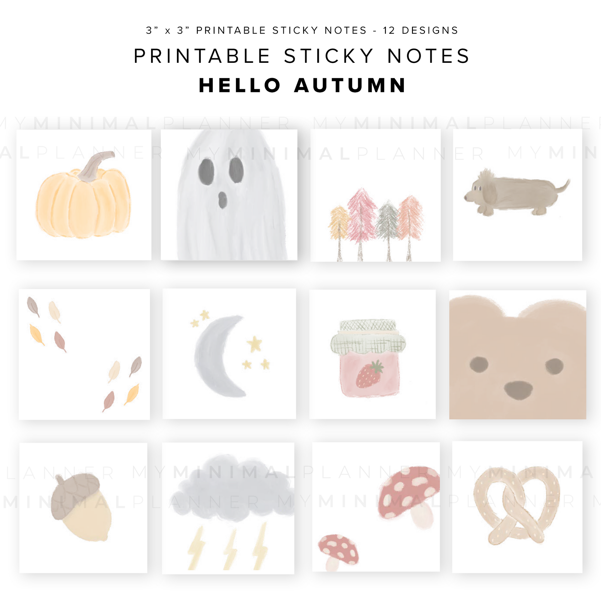 PSN10 - 3x3 Hello Autumn Stickies - Printable Sticky Notes