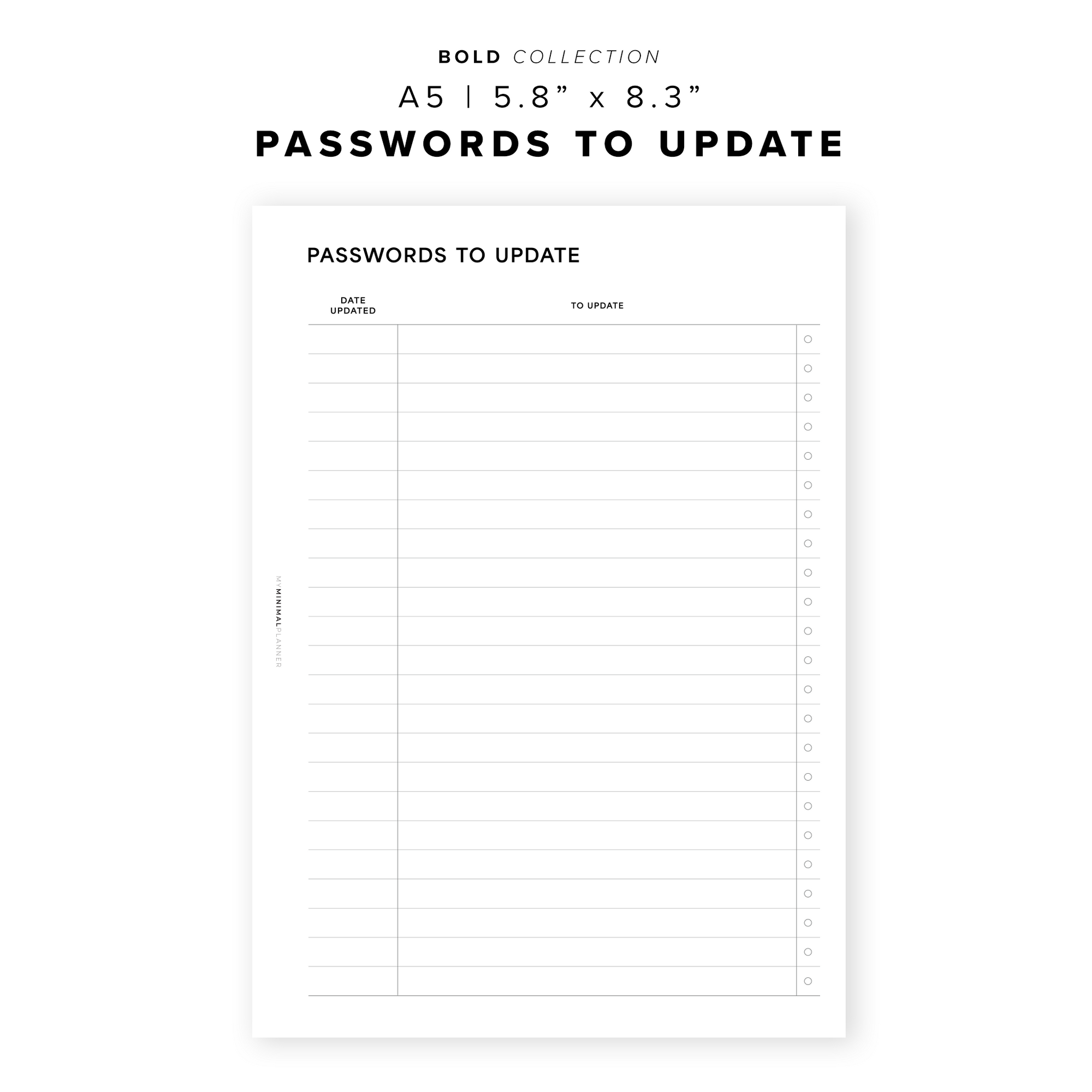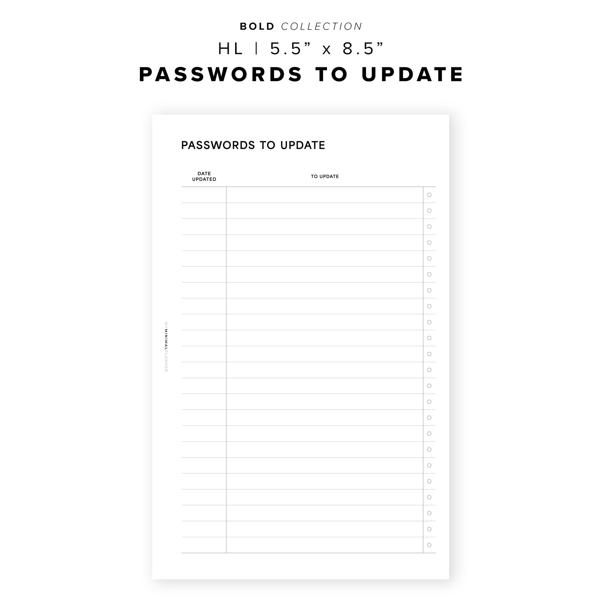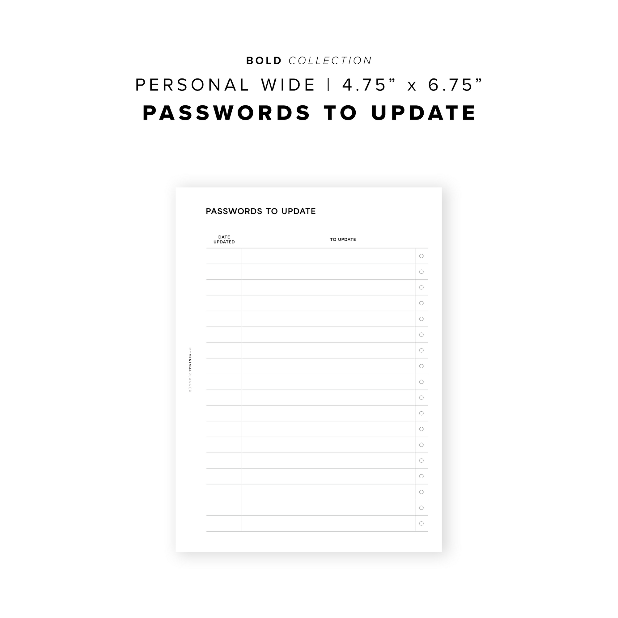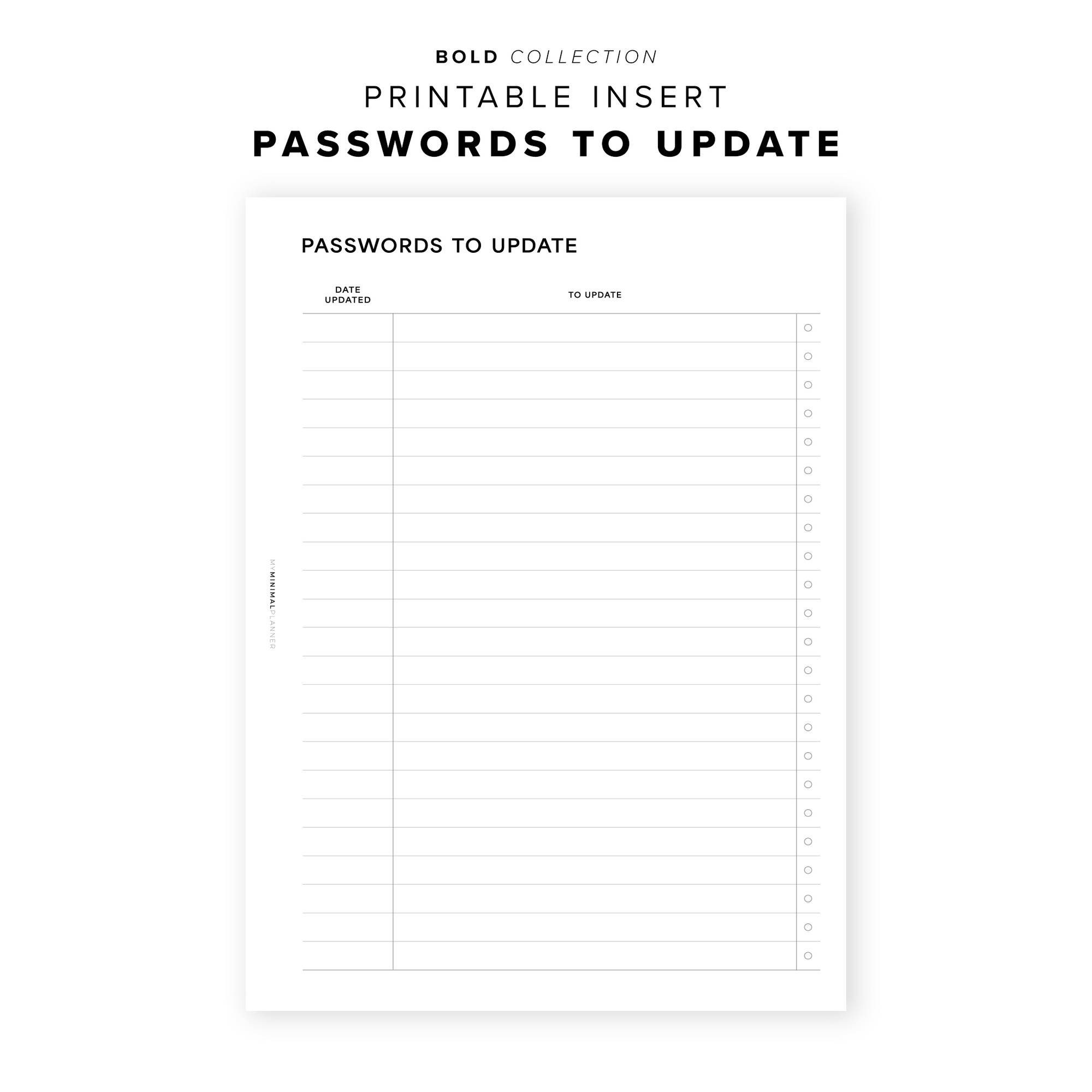PR355 - Passwords To Update - Printable Insert